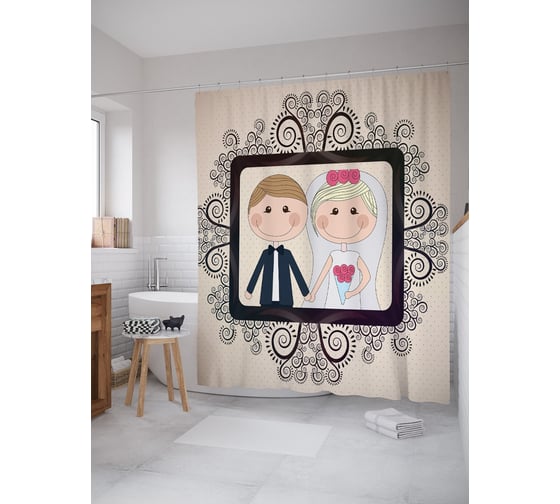Штора (занавеска) для ванной JoyArty "Москва" из сатена, 180х200 см с крючками, sc_58563