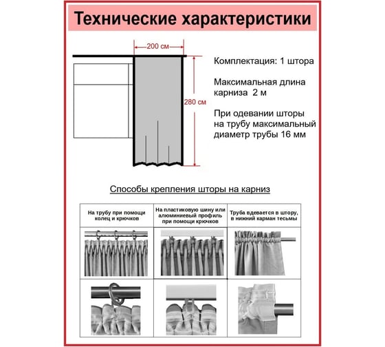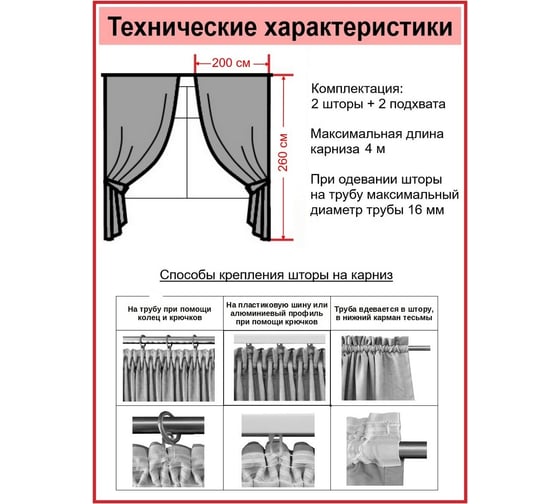 Портьерная штора Этель 270х300 см, блэкаут, металл, 210 г/м2, 100 п/э 4292704