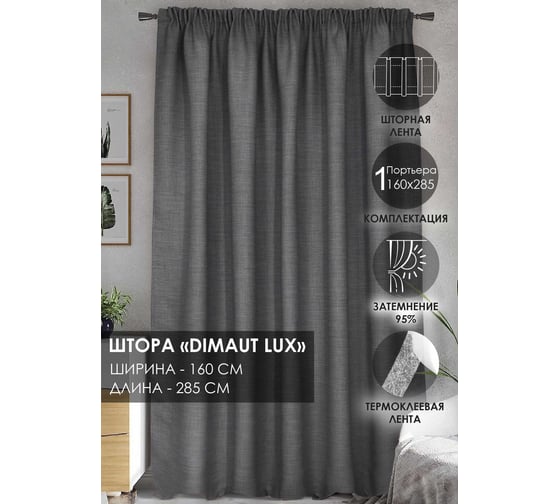 Портьерная штора Этель 270x300 см, серый, блэкаут, 240 г/м2 10339928