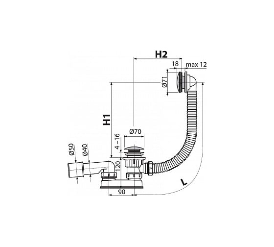 Сифон для ванны Alca Plast CLICK/CLACK, матовый черный A507BLACK-120