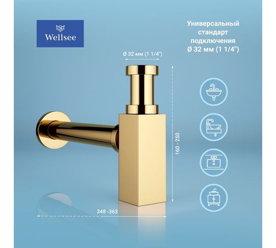 Металлический сифон для раковины Wellsee Drainage System 182118000