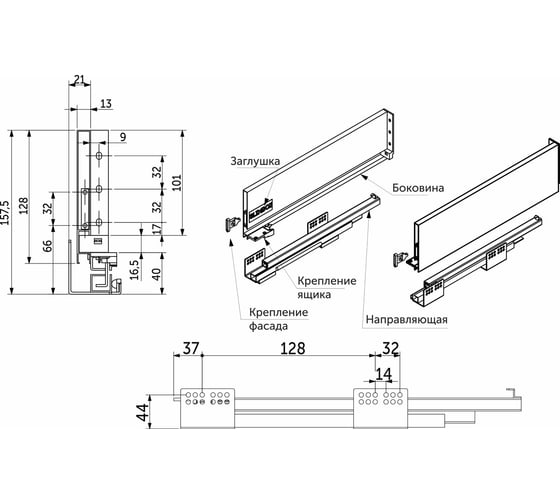 Системы выдвижения ящиков Цвет белый Тип выдвижения полное