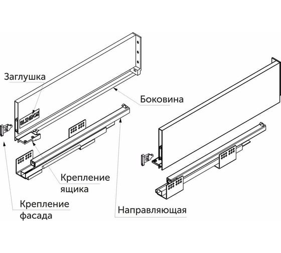 Система ящиков AKS Slimbox 90x500 мм, низкий, с доводчиком, белый, правый и левый 50803