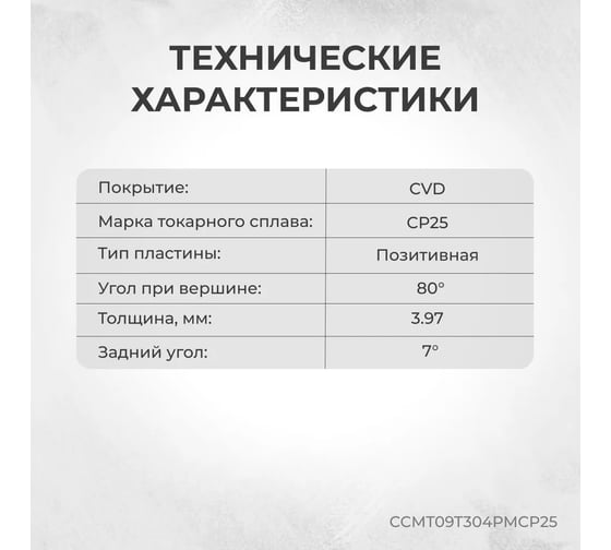 Пластина токарная CCMT060204-UM NRG25P, 10 шт NORGAU 020057051
