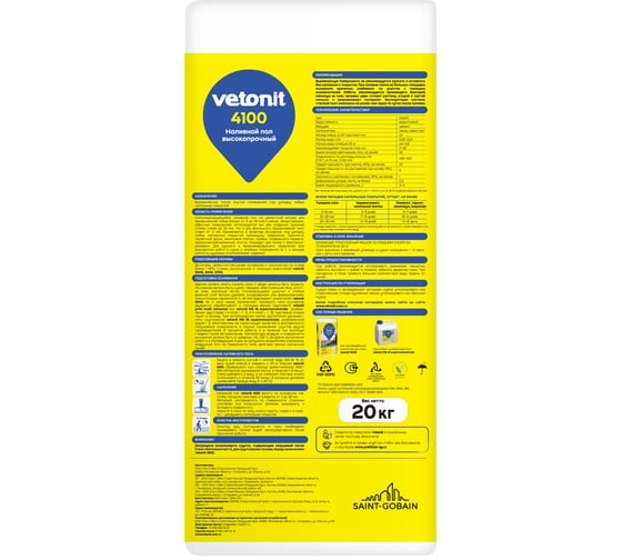 Суперфинишный наливной пол Vetonit 4100 20 кг 1025021