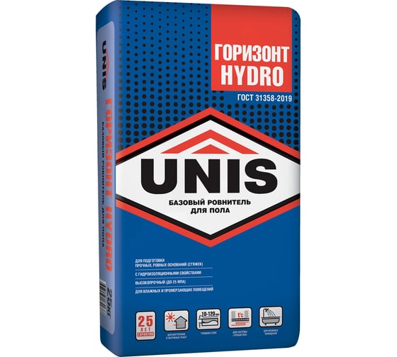 Влагостойкая стяжка для пола UNIS ГОРИЗОНТ HYDRO 25 кг 4607005184238