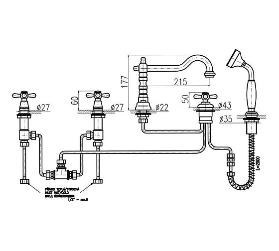 Смеситель на борт ванны RavSlezak Morava Retro MK164.5PZ