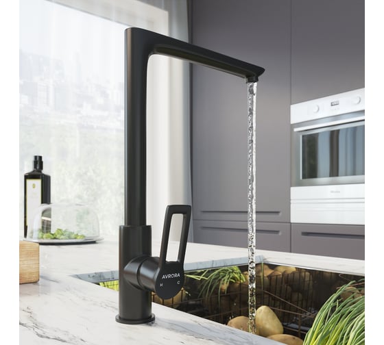 Смеситель для кухни AVRORA-WM Avrora Kitchen с высоким гибким изливом черный AV9002B