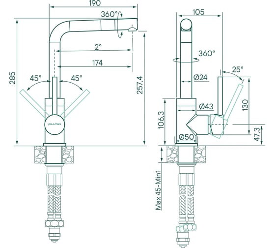 Смеситель для кухни Paulmark salix вороненая сталь Sa213419-GM