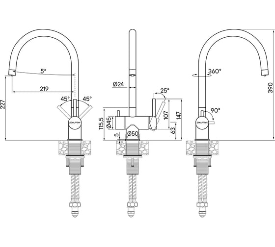 Смеситель для питьевой воды DEVIDA с черным гибким изливом, вороненый, на гайке DVS1509-29B