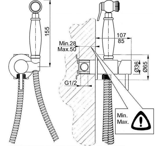 Встроенный гигиенический душ Rose с держателем туалетной бумаги R307