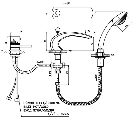 Смеситель на борт ванны RavSlezak Dunaj D471.5P