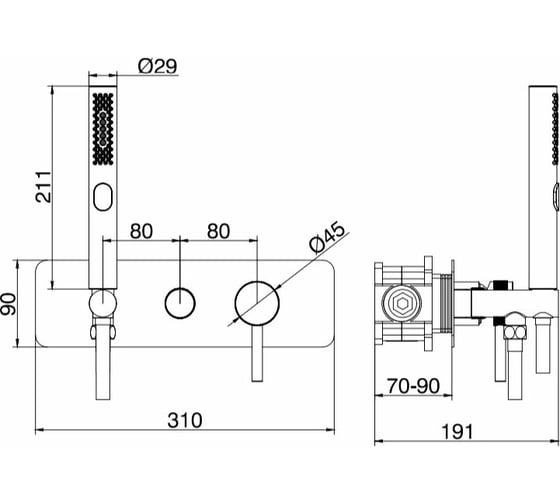 Смесители для ванной и душа Латунь Стандарт подводки 1/2