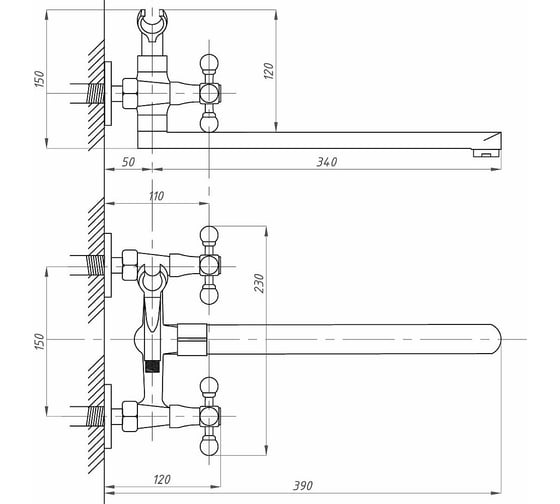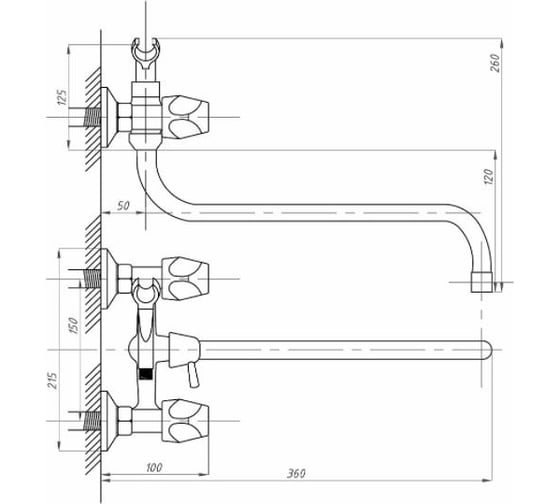 Смеситель для кухни ПрофСан ПСМ настенный, без аэратора тип ГОСТ См-МДРНр PSM-108-77