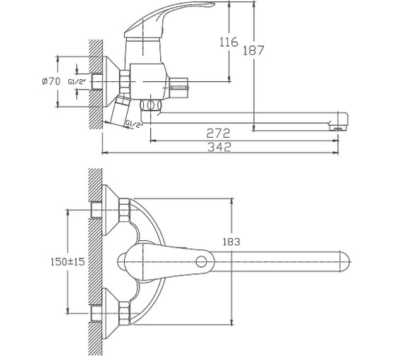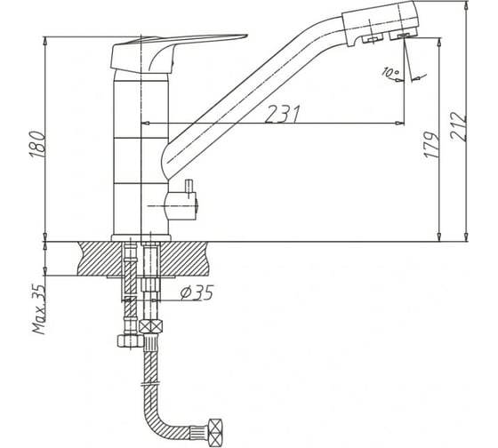 Смеситель для кухни Haiba 40к hb4504-2 с отв, п/гайку 539761