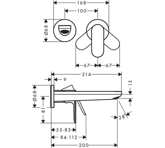 Смеситель для раковины HANSGROHE Novus Loop 100 71081000 00000057801