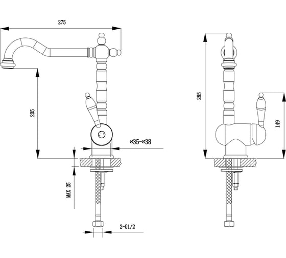 Смеситель для кухни с выдвижной лейкой Timo Saona антик 2386/02FL