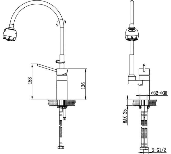 Смеситель для кухни Timo Hette с подключением фильтра 1026 02F
