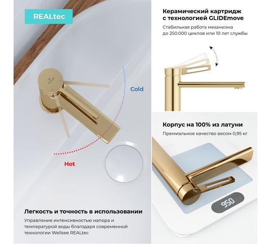 Смеситель для раковины в ванную комнату Wellsee ONCE! and forever в наборе 2 в 1 201000008