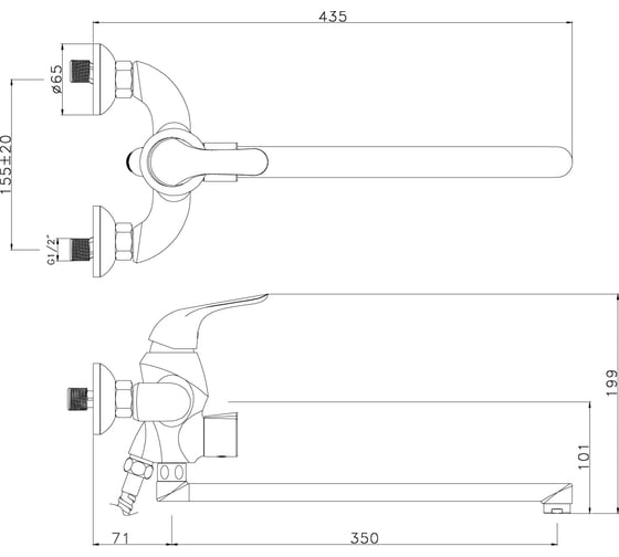 Смеситель для ванны Decoroom двуручный, универсальный DR47043