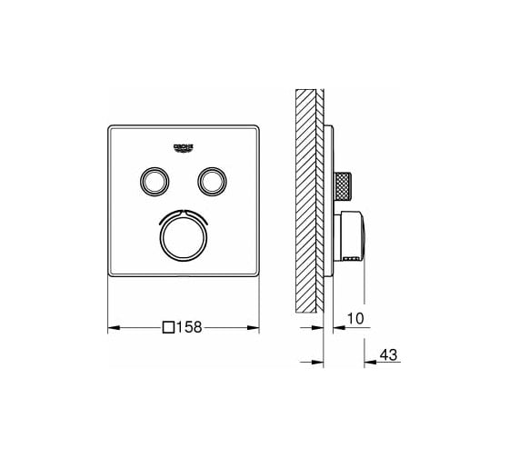 Внешняя часть термостата для душа Grohe Grohtherm на 2 потребителя, квадратная, матовый черный 1022092430