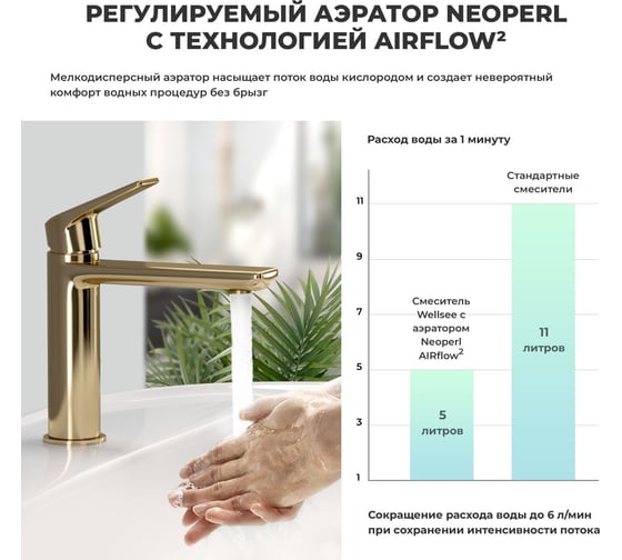 Смеситель для раковины в ванную комнату Wellsee ICON! for life в наборе 7 в 1 201000254