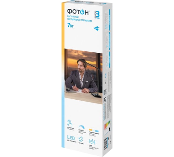 Настольный Led светильник Ultraflash UF-812 C01 белый 7Вт, 4500К, 3 ур.яркости, кожа 15172