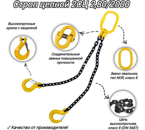 Цепной строп HITCH 2СЦ-2,8 т. (L=2 м) 8 кл SZ075119