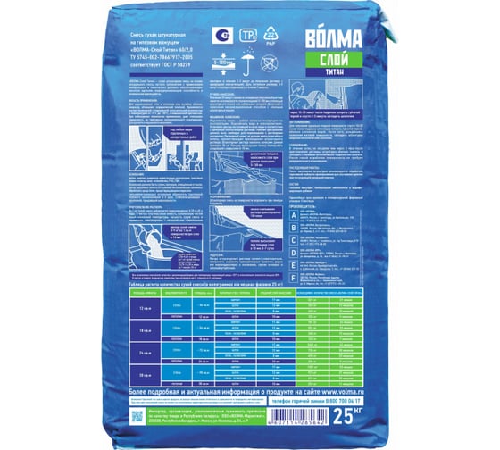 Гипсовая штукатурка Волма Слой 30 кг 30000048