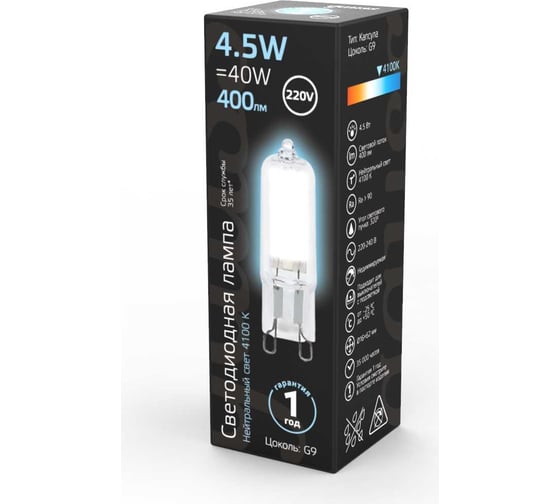 Светодиодная лампа Gauss LED G9 2.5W 230V 4100K 107309225