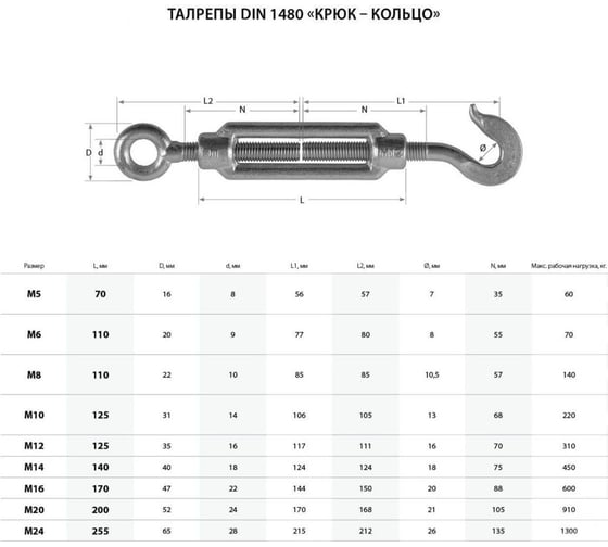 Талреп САМСОН М24 (крюк-кольцо) DIN 1480 М02140-37188