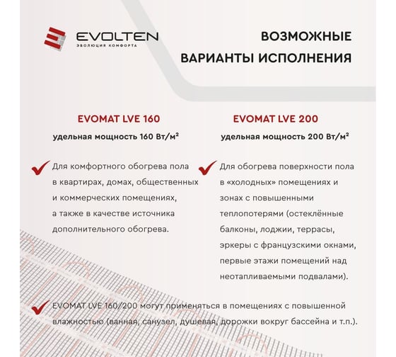 Нагревательный мат Evolten EVOMAT LVE 200 0.5 кв.м KPL003529
