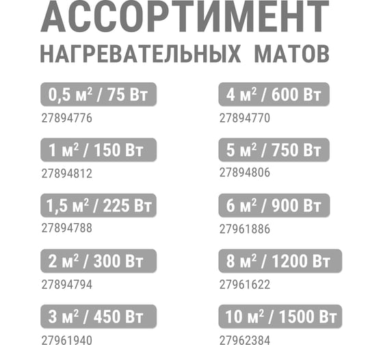 Нагревательный мат для теплого пола 10 м2 1500 Вт Обогрев Люкс 91100