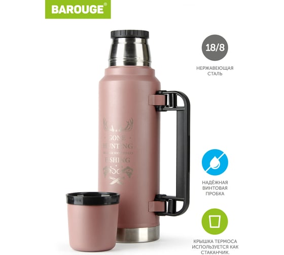 Термос BAROUGE из нержавеющей стали, титан, складная ручка BT-430F 1200 мл/титан/термос