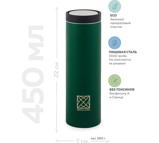 Термокружка Santai Living To-Go 360 из стали, 450 мл, зеленая SL-8618-25
