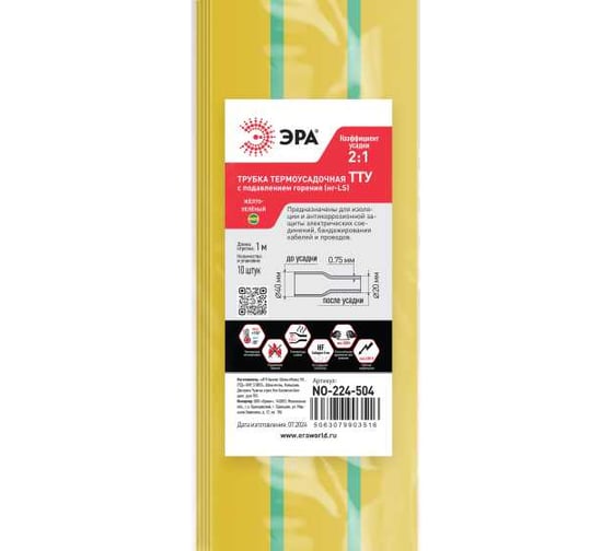 Термоусаживаемая трубка HLT ТТУ 40/20 желтая (25 м/ролл) 084-05-22