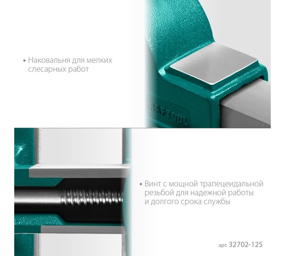 Слесарные тиски KRAFTOOL Grand 125 мм 32702-125