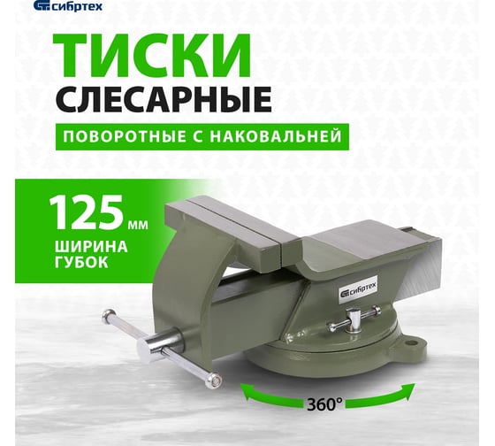 Слесарные тиски СИБРТЕХ 125 мм, стальные, поворотные 18619