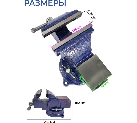 Слесарные тиски Без бренда 125 мм, поворотные 18665