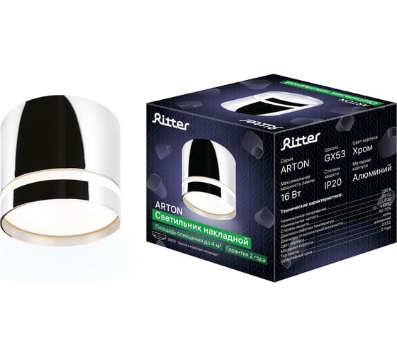 Накладной светильник Ritter Arton цилиндр, 85x70, GX53, алюминий/стекло, золото 59949 4