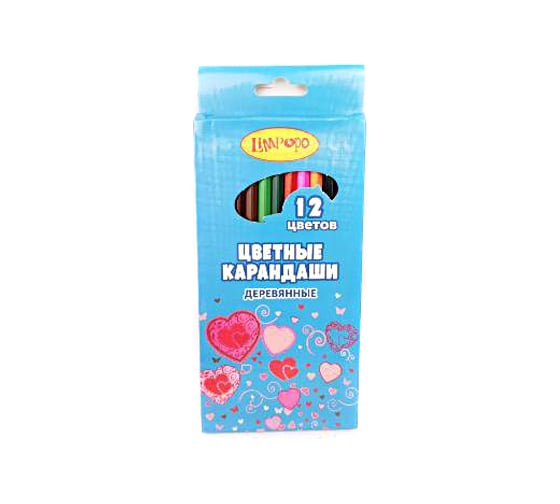 Карандаши Limpopo Сердечки 12 цветов, деревянные арт. LP0135 КарЦ1208