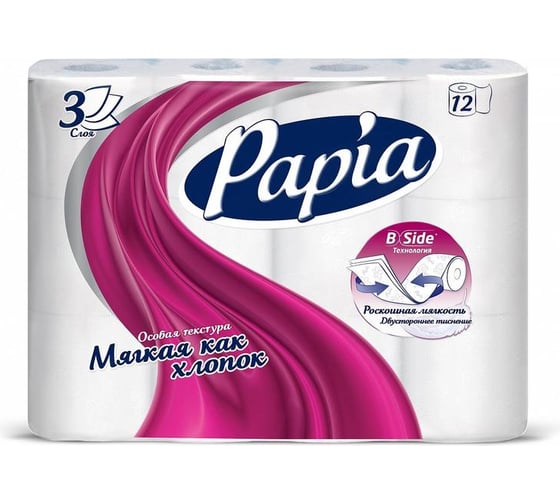 Туалетная бумага PAPIA Белая 3 слоя, 12 рулонов 1015031487