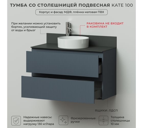 Подвесная тумба Jorno Stone 100 для раковины 18244939 столешница из керамогранита Stn.01.100, P, A, JR