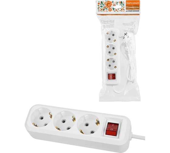 Удлинитель сетевой Very 3 розетки ПВС 3x1мм, 16А, с/з, 5м, шт 89-0-138