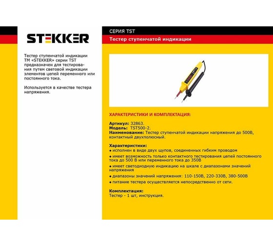 Двухполюсный индикатор напряжения, 750 мм, 220 - 400 В TOPEX 39D070