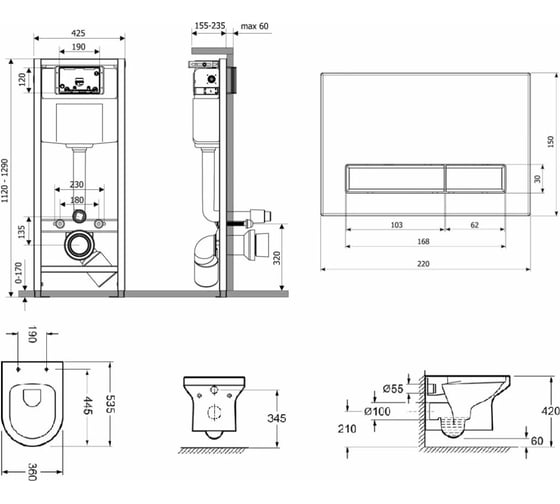 Система скрытой установки унитаза АНИ Пласт с шириной рамы 40 см, с клавишей WP1 WCP4141