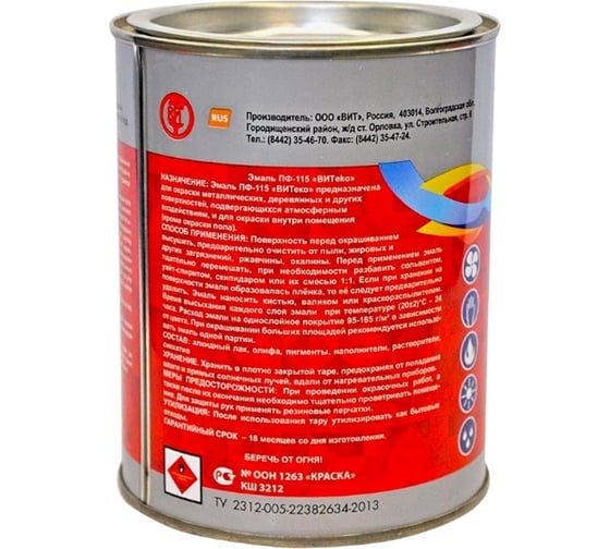 Универсальная эмаль ALFAVIT Альфа ПФ-115 серая 20 кг 1 30805