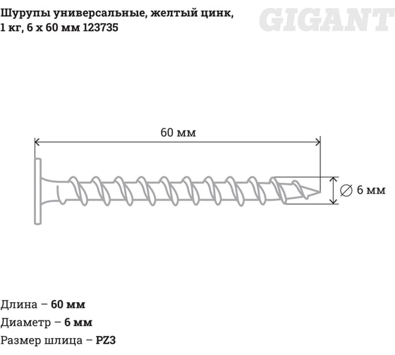 Универсальные шурупы длиной 60 мм