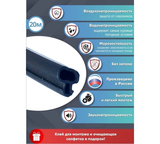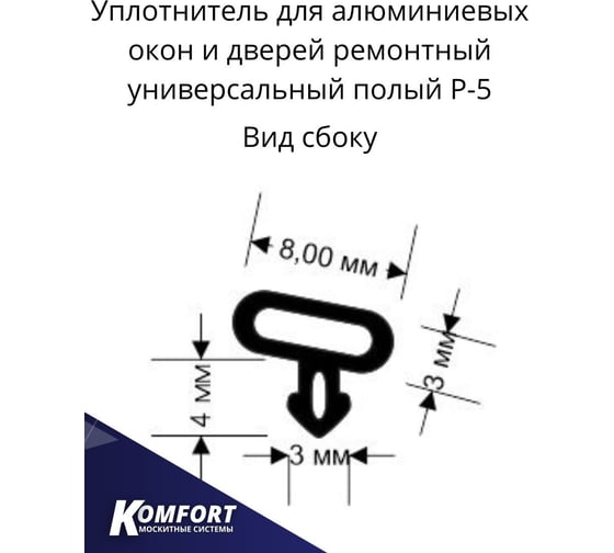 Уплотнитель TPE Политех черный, 8х10х5 мм, 6 м 6504351