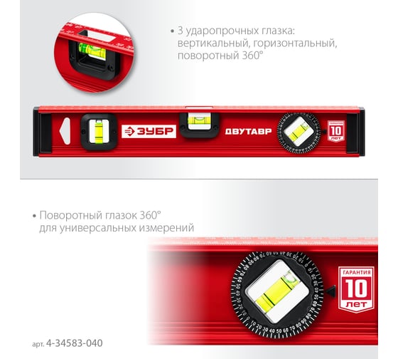 Уровень с двутавровым профилем ЗУБР Двутавр 400 мм 4-34583-040_z01